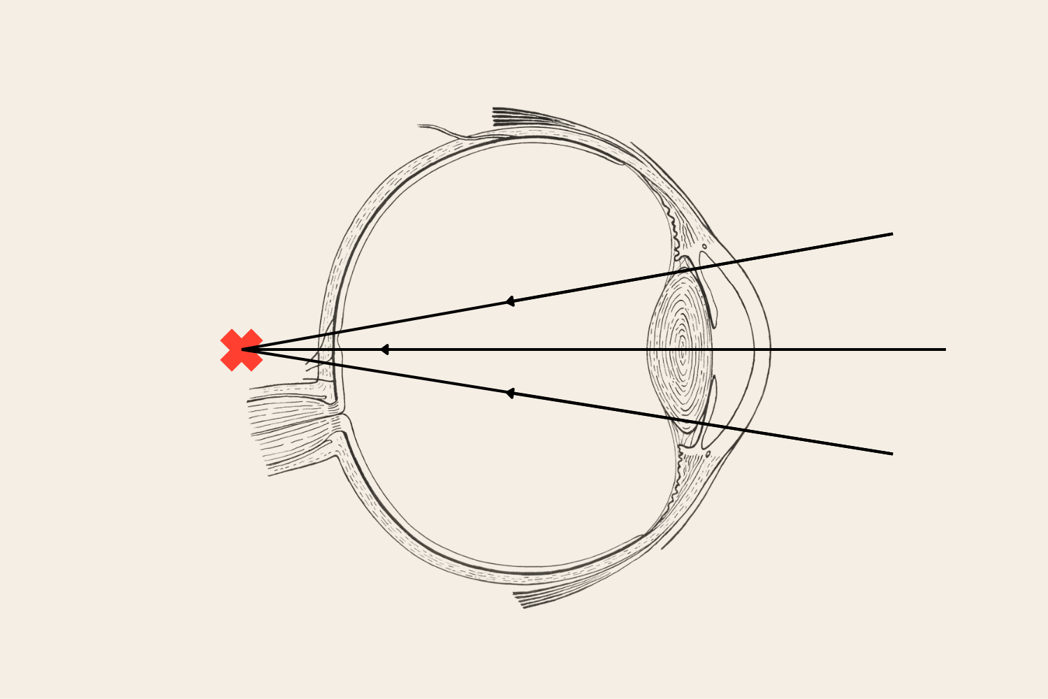 Prescription lenses change how light enters the eye so it can focus correctly on the retina. Depending on the condition, correction may include minus lenses for myopia, cylindrical correction for astigmatism, or progressive lenses for presbyopia.