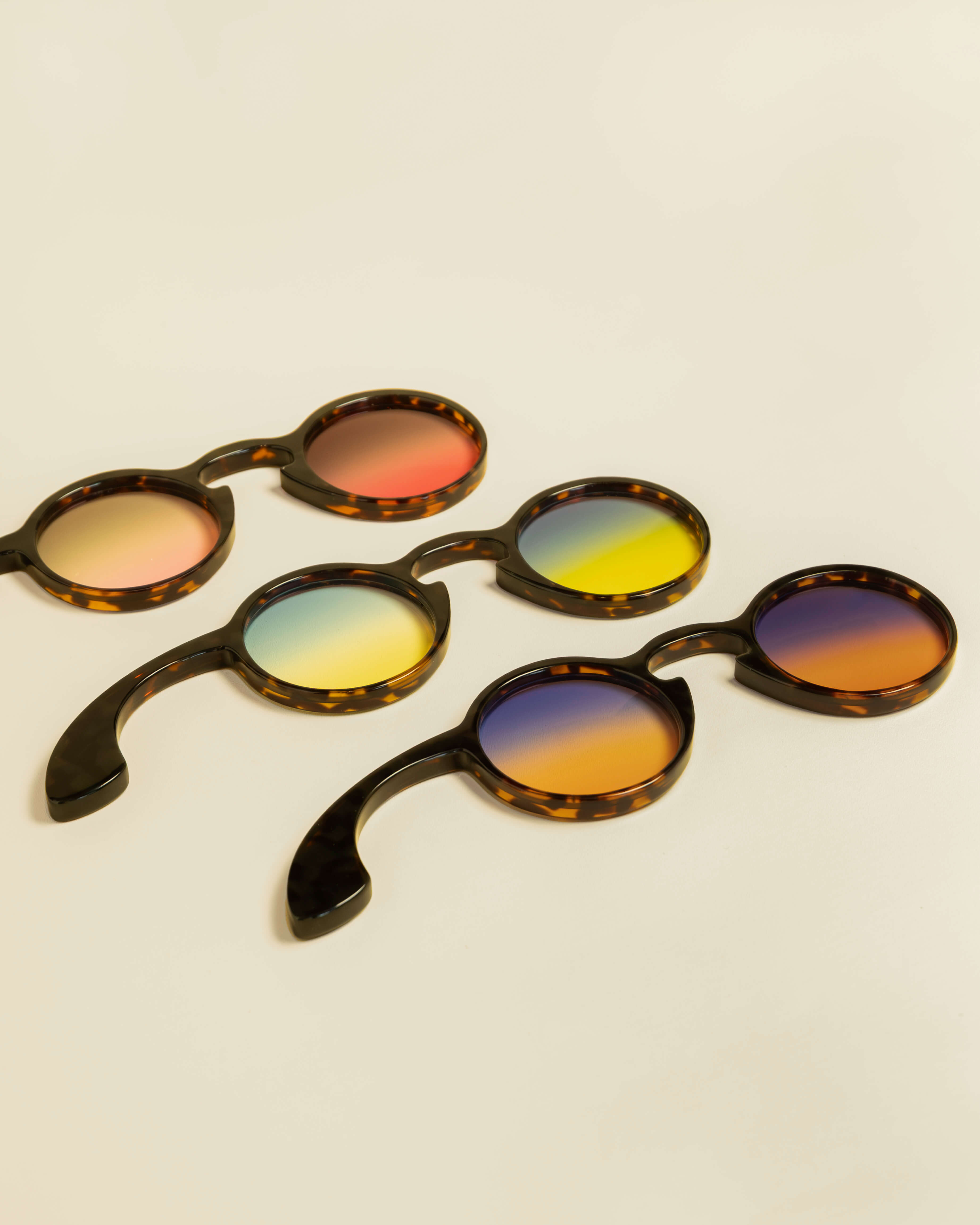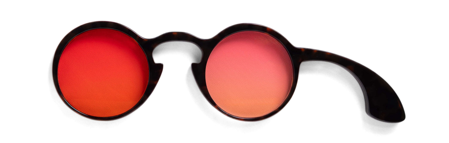 We developed these lenses in-house and entrusted their production to HOYA. These colors are exclusive to Maison Mata. All the trial frames below are fitted with two intensities: the darkest shade on the side opposite the handle, and the lighter version on the handle side. These two options allow you to choose the exact intensity you prefer, whether you want a darker tint for bright, sunny days or a lighter tint for comfortable use in all conditions.