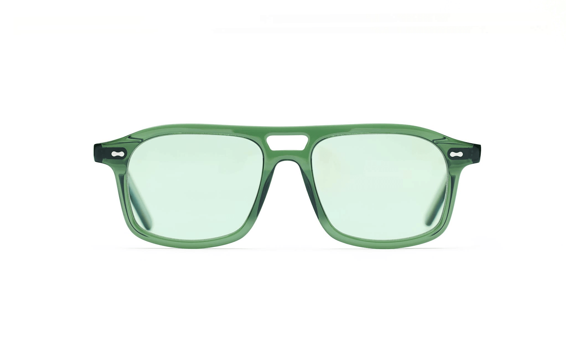 Revisited pilot frame, inspired by sporty models from the 80s. Defined by its straight bridge and bold silhouette.