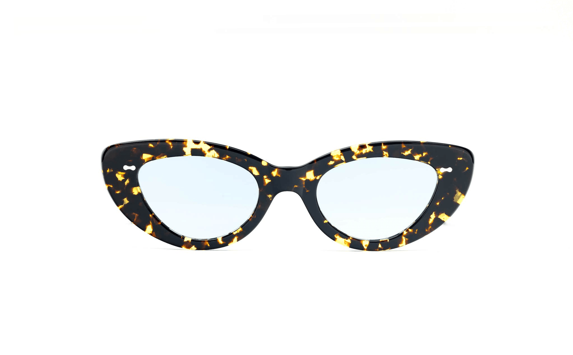 Cat-eye frame with sharp lines, inspired by glamorous icons of the 50s. A bold retro statement.