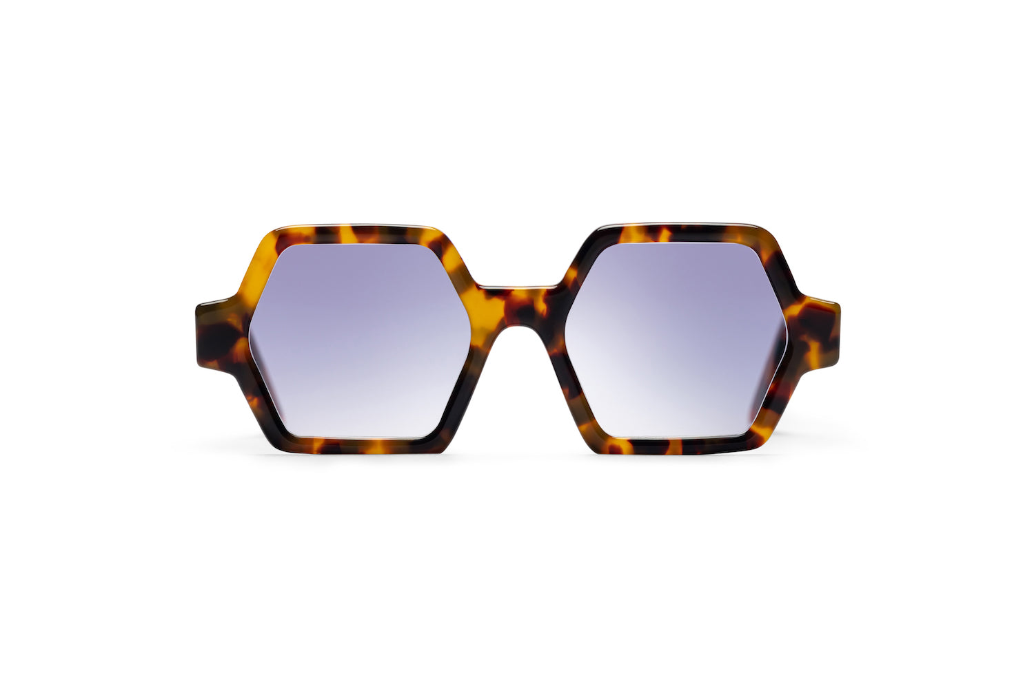 Each frame is hand-shaped from Italian Mazzucchelli acetate, chosen for its rich tones and durability, then polished to a smooth, reflective finish that highlights its geometric edges.