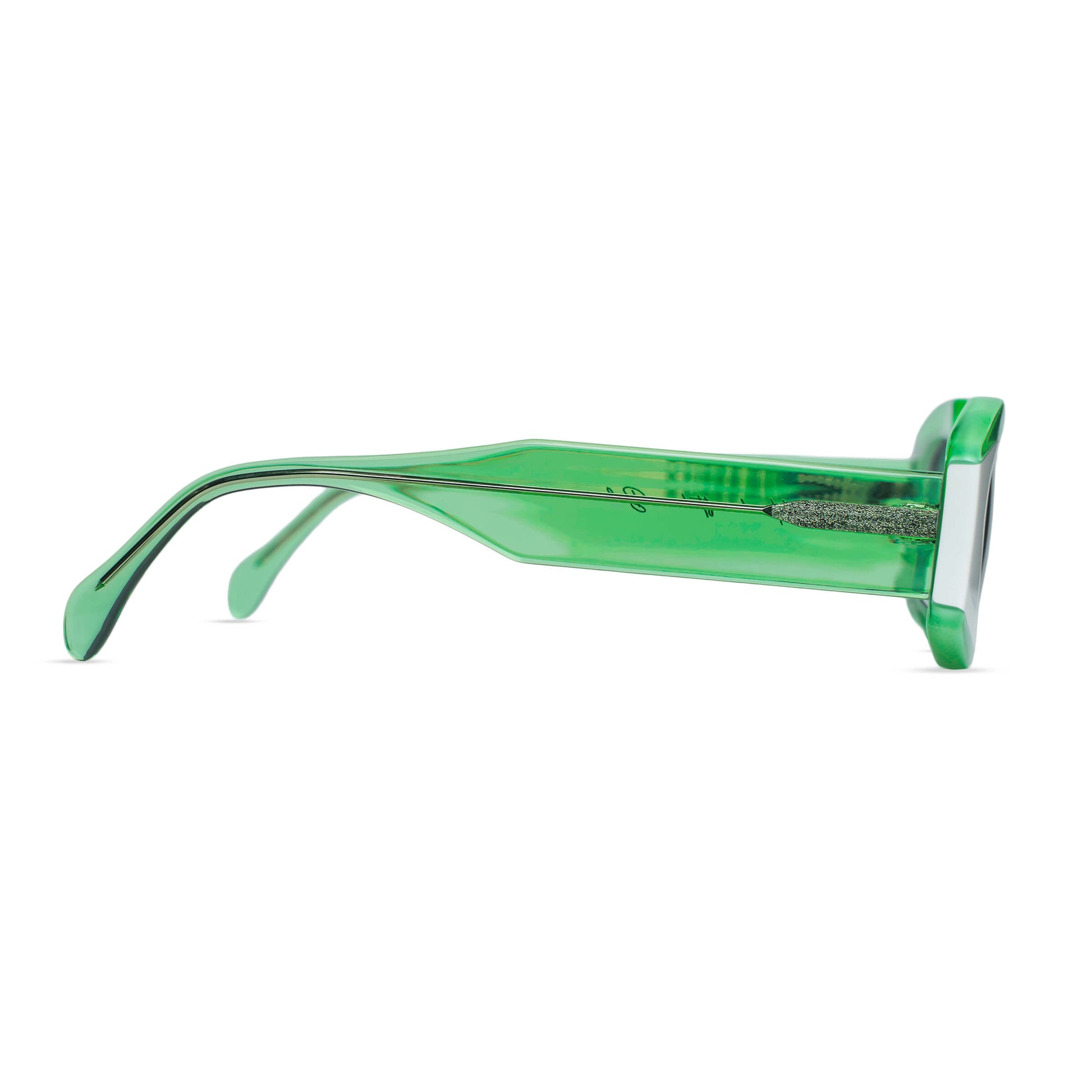 Designed for both men and women, this frame flatters oval, square and long face shapes, offering definition without heaviness. Crafted from Italian Mazzucchelli acetate, often built from multiple layered sheets, the green finish reveals depth and nuanced reflections under light. Each frame is carefully shaped and hand-polished for a smooth, luminous finish and a precise fit.