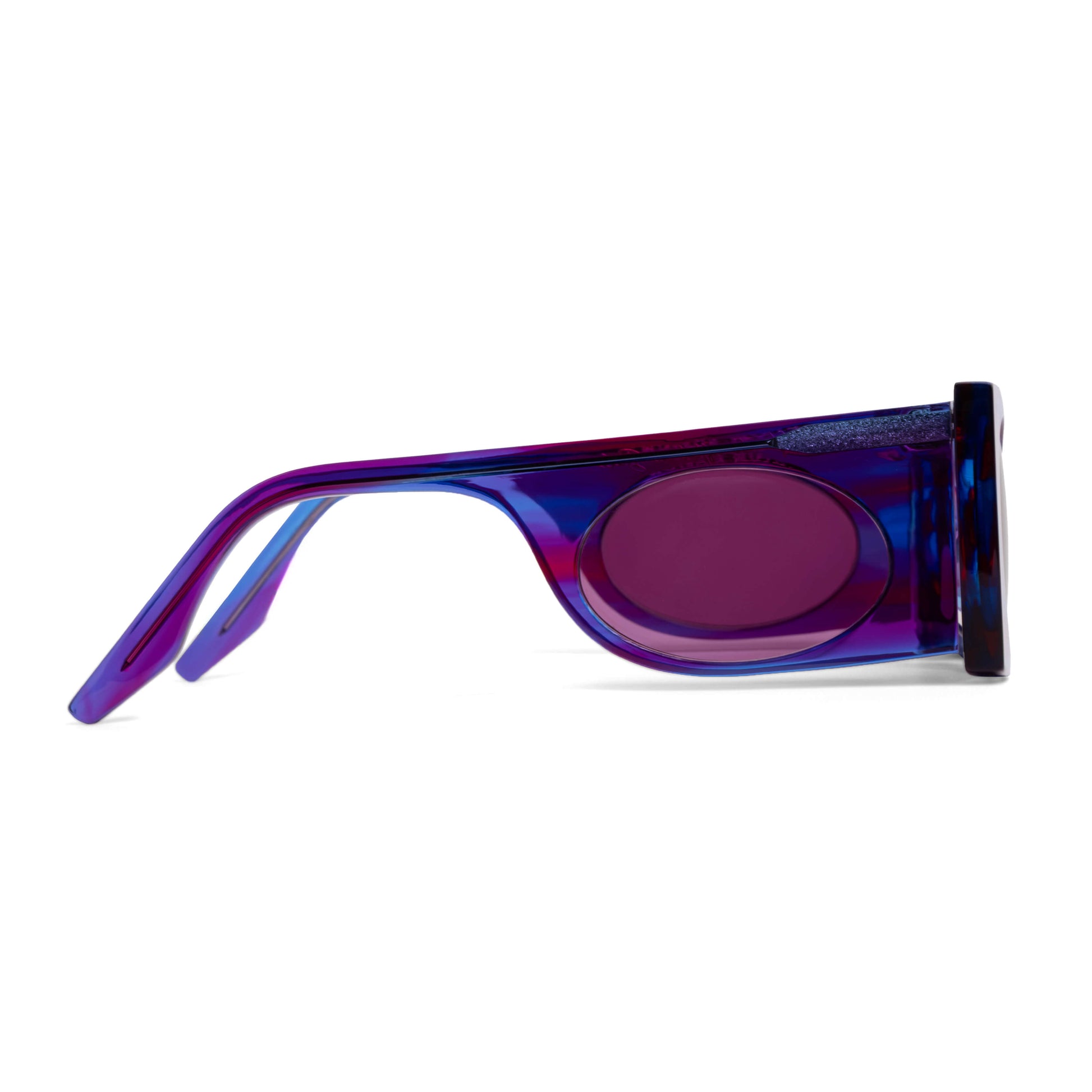 Handcrafted in our Bali workshop (≈15 days), Velvet Hamme Violet reimagines the rectangular frame with a vibrant touch. Its clean, angular shape is enhanced by the deep violet hue, and the distinctive glass insertion in the temple adds an element of intrigue and sophistication. The bold lines and elegant structure create a timeless silhouette that suits both men and women. Designed to flatter round and oval faces, Velvet Hamme Violet brings both character and balance. Made from Italian Mazzucchelli acetate, it offers depth, durability, and lasting comfort.